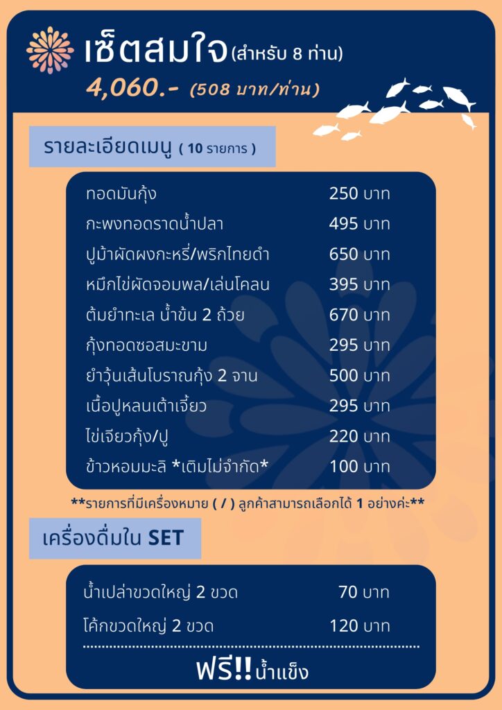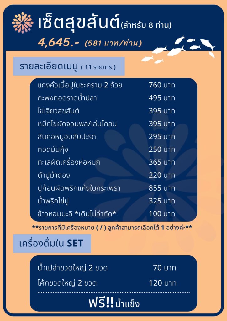 ร้านอาหารแสนสุขสมซีฟู้ด หัวหิน รับจัดกรุ๊ปทัวร์ / กรุ๊ปสัมมนา